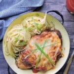 This Baked Chicken Parmigiana Recipe, or Chicken Parm Recipe for short, is delicious breaded chicken breast smothered in a quick homemade red sauce and baked in the oven.